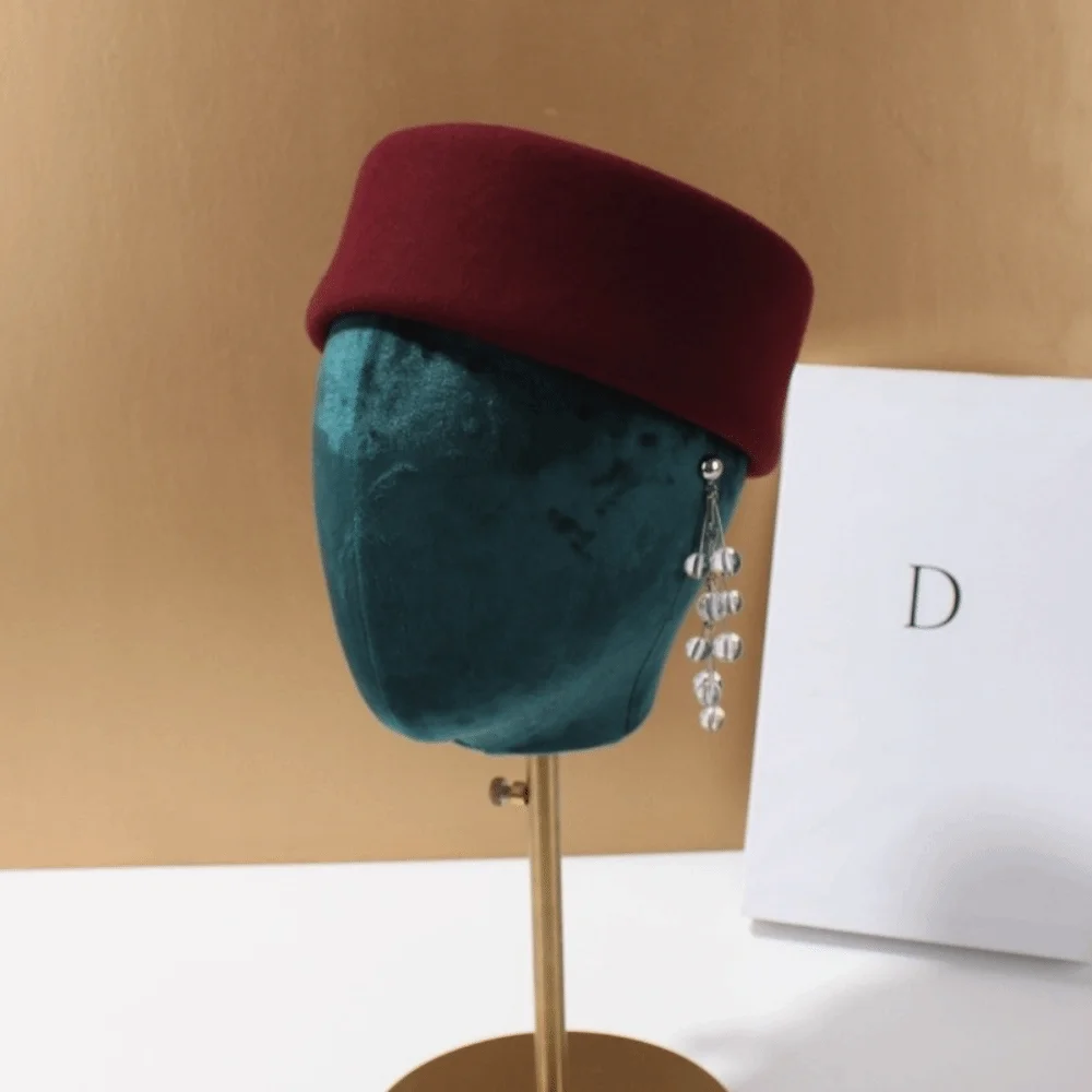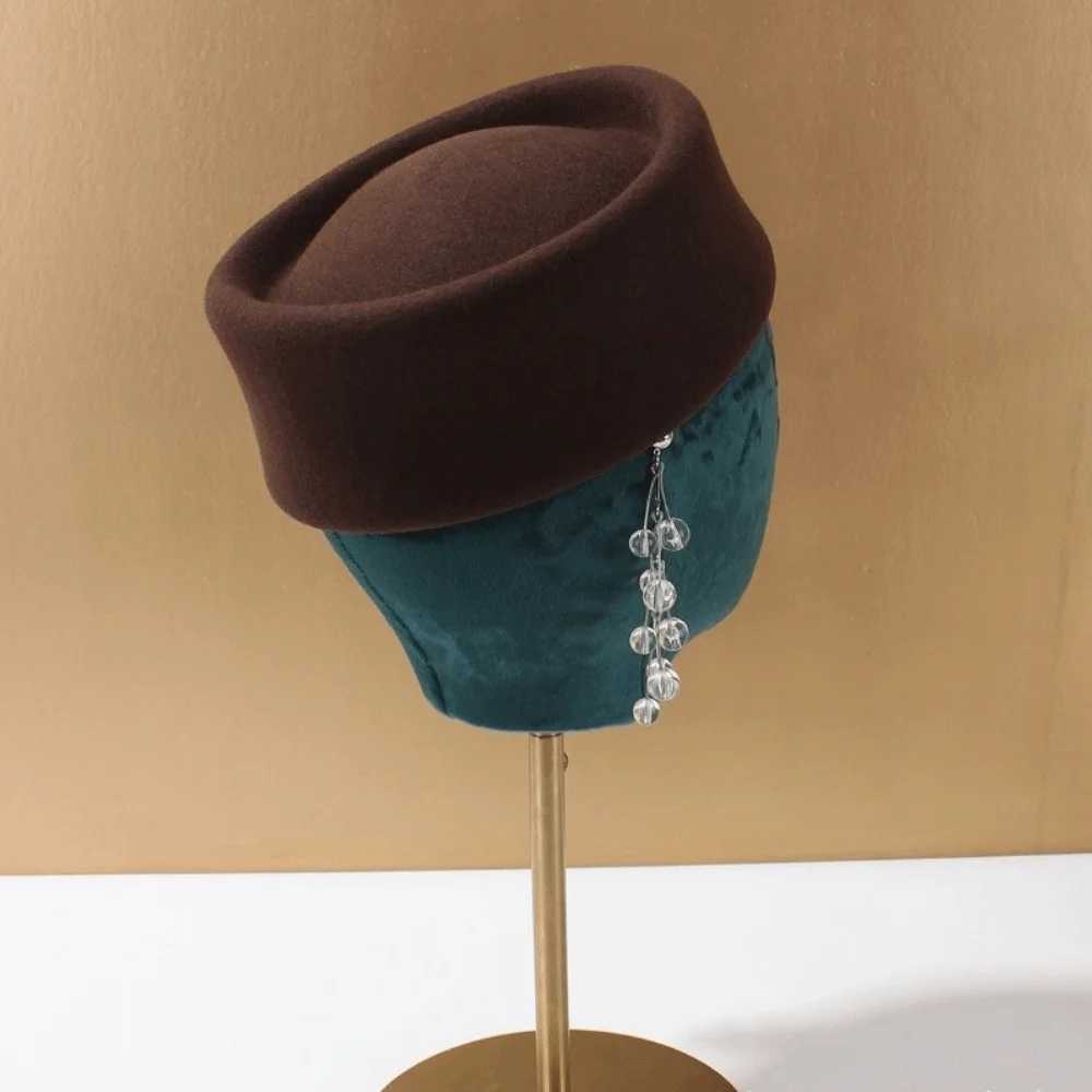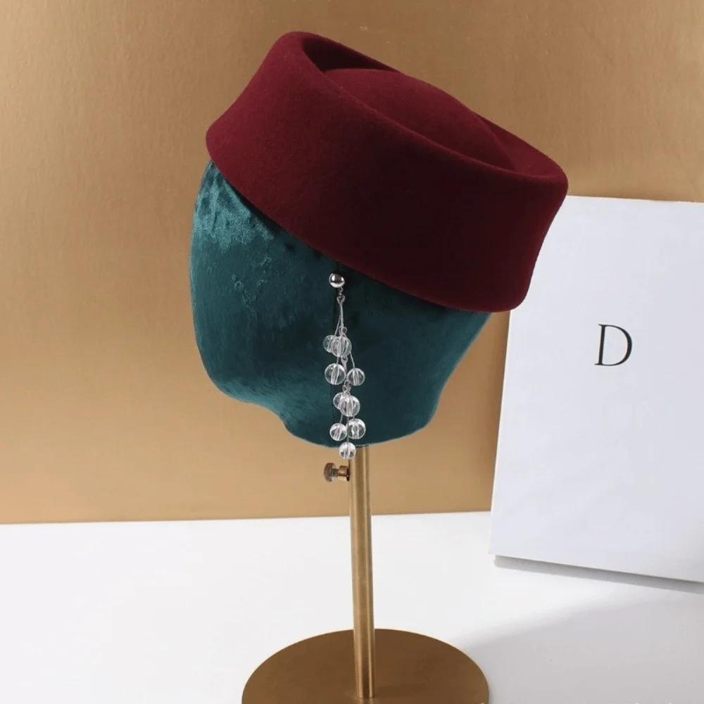 –Adopting the silhouette of an air hostess hat, this hat combines classic structured details with soft wool texture. It balances elegance and comfort, and is suitable for both daily wear and special occasions.